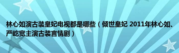 林心如演古装皇妃电视都是哪些(倾世皇妃 2011年林心如、严屹宽主演古装言情剧)