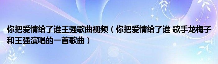 你把爱情给了谁王强歌曲视频(你把爱情给了谁 歌手龙梅子和王强演唱的一首歌曲)